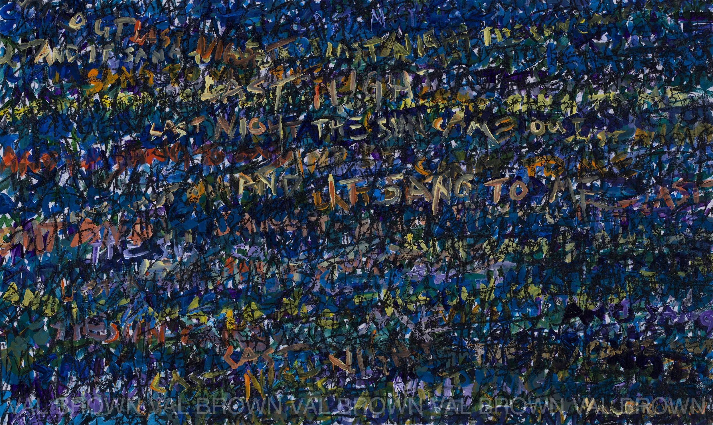 Works in Words incorporate quotes and text associated with creators that have inspired Valerie over the years. A Thousand Kisses Deep Beautiful Ramifications / New Beginnings Break the Causal Chain Happy Thank You More Please Inferno Purgatorio Paradiso Lay the Real Thing On Me The Sun Came Out Last Night and It Sang To Me The Future Isn't What it Used to Be